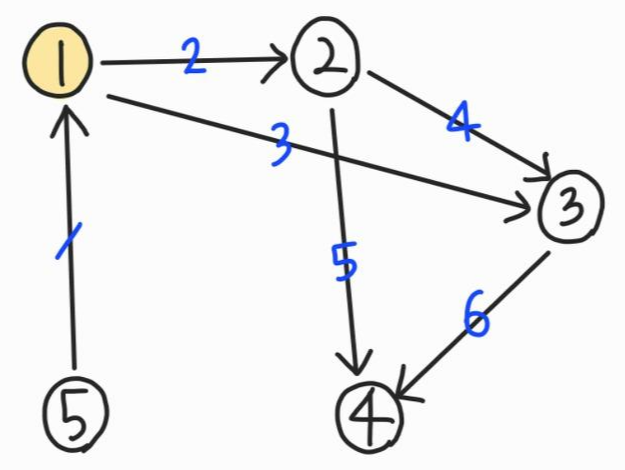 ์ด์ ๋ ธ๋ 2๊น์ง ๊ฐ๋๋ฐ์ ๋ํ ๊ฐ์ค์น๊ฐ 2์ด๋ฏ๋ก 3๊น์ง์ ๊ฐ์ค์น ํฉ cost๋ 6์ด ๋๋ค.