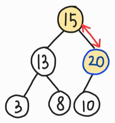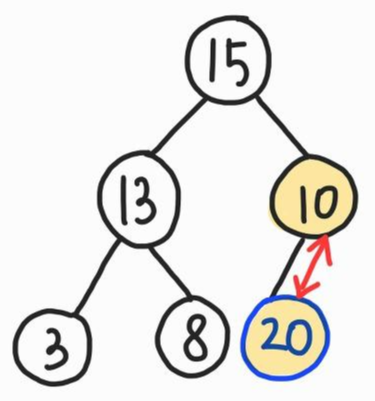μλμ μμλ μ΅λ νμΌλ‘ μ λ ¬λ νΈλ¦¬ κ΅¬μ‘°κ° μμ λ 20μ μΆκ°νλ κ³Όμ μ΄λ€.